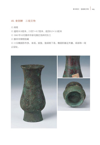 %u7b2c%u4e94%u90e8%u5206 %u56fd%u5bb6%u7ea7%u6587%u7269 10545. %u9752%u94dc%u89ef %u4e09%u7ea7%u6587%u7269%u25cb %u897f%u5468%u25cb %u901a%u9ad816.9%u5398%u7c73%u3001%u53e3%u5f847%u00d76.7%u5398%u7c73%u3001%u5e95%u5f846.2%u00d75.5%u5398%u7c73%u25cb 1981%u5e7410%u6708%u6ed5%u5dde%u5e02%u59dc%u5c6f%u9547%u5e84%u91cc%u897f%u6751%u51fa%u571f%u25cb %u6ed5%u5dde%u5e02%u535a%u7269%u9986%u85cf%u25cb %u53e3%u5448%u692d%u5706%u5f62%u5916%u4f88%uff0c%u675f%u9888%uff0c%u9f13%u8179%uff0c%u8179%u90e8%u5fae%u4e0b%u5782%uff0c%u692d%u5706%u5f62%u5708%u8db3%u5916%u6487%u3002%u9888%u90e8%u9970%u4e00%u5468%u4e91%u96f7%u7eb9%u3002