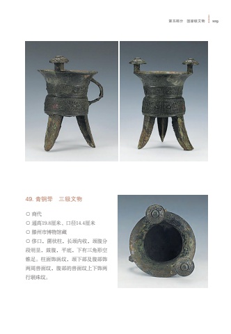 %u7b2c%u4e94%u90e8%u5206 %u56fd%u5bb6%u7ea7%u6587%u7269 10949. %u9752%u94dc%u659d %u4e09%u7ea7%u6587%u7269%u25cb %u5546%u4ee3%u25cb %u901a%u9ad819.8%u5398%u7c73%u3001%u53e3%u5f8414.4%u5398%u7c73%u25cb %u6ed5%u5dde%u5e02%u535a%u7269%u9986%u85cf%u25cb %u4f88%u53e3%uff0c%u83cc%u72b6%u67f1%uff0c%u957f%u9888%u5185%u6536%uff0c%u9888%u8179%u5206%u6bb5%u660e%u663e%uff0c%u9f13%u8179%uff0c%u5e73%u5e95%uff0c%u4e0b%u6709%u4e09%u89d2%u5f62%u7a7a%u9525%u8db3%u3002%u67f1%u9762%u9970%u6da1%u7eb9%uff0c%u9888%u4e0b%u90e8%u53ca%u8179%u90e8%u9970%u4e24%u5468%u517d%u9762%u7eb9%uff0c%u8179%u90e8%u7684%u517d%u9762%u7eb9%u4e0a%u4e0b%u9970%u4e24%u884c%u8054%u73e0%u7eb9%u3002