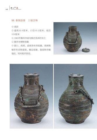 116%u6ed5TENGZHOUYINXIANG%u5dde%u5370%u8c6156. %u9752%u94dc%u6c72%u58f6 %u4e09%u7ea7%u6587%u7269%u25cb %u6218%u56fd%u25cb %u901a%u9ad832.6%u5398%u7c73%u3001%u53e3%u5f8410.2%u5398%u7c73%u3001%u5e95%u5f8413.6%u5398%u7c73%u25cb 1985%u5e74%u6ed5%u5dde%u5e02%u59dc%u5c6f%u9547%u5e84%u91cc%u897f%u6751%u51fa%u571f%u25cb %u6ed5%u5dde%u5e02%u535a%u7269%u9986%u85cf%u25cb %u5706%u53e3%uff0c%u9ad8%u9888%uff0c%u76d6%u9888%u5404%u6709%u56db%u94ae%u5708%uff0c%u9888%u4e24%u4fa7%u94fa%u9996%u6709%u6d3b%u7edc%u63d0%u6881%uff0c%u5708%u8db3%u6d45%u77ee%u3002%u8179%u90e8%u9970%u6709%u87e0%u867a%u7eb9%uff0c%u95f4%u6709%u7c97%u51f9%u5f26%u7eb9%u3002