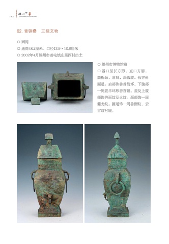 122%u6ed5TENGZHOUYINXIANG%u5dde%u5370%u8c6162. %u9752%u94dc%u7f4d %u4e09%u7ea7%u6587%u7269%u25cb %u897f%u5468%u25cb %u901a%u9ad848.2%u5398%u7c73%u3001%u53e3%u5f8413.9%u00d710.6%u5398%u7c73%u25cb 2002%u5e744%u6708%u6ed5%u5dde%u5e02%u59dc%u5c6f%u9547%u5e84%u91cc%u897f%u6751%u51fa%u571f%u25cb %u6ed5%u5dde%u5e02%u535a%u7269%u9986%u85cf%u25cb %u5668%u53e3%u5448%u957f%u65b9%u5f62%uff0c%u76f4%u53e3%u65b9%u5507%uff0c%u9ad8%u6298%u9888%uff0c%u6e9c%u80a9%uff0c%u6df1%u5f27%u8179%uff0c%u957f%u65b9%u5f62%u5708%u8db3%u3002%u80a9%u90e8%u9970%u517d%u9996%u8854%u73af%uff0c%u4e0b%u8179%u90e8%u4e00%u4fa7%u7f6e%u534a%u73af%u5f62%u517d%u9996%u94ae%u3002%u76d6%u53ca%u4e0a%u8179%u90e8%u9970%u517d%u9762%u7eb9%u53ca%u706b%u7eb9%u3002%u9888%u90e8%u9970%u4e00%u5468%u5914%u9f99%u7eb9%u3002%u5708%u8db3%u9970%u4e00%u5468%u517d%u9762%u7eb9%uff0c%u4e91%u96f7%u7eb9%u886c%u5e95%u3002
