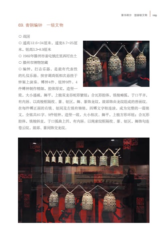 %u7b2c%u4e94%u90e8%u5206 %u56fd%u5bb6%u7ea7%u6587%u7269 12969. %u9752%u94dc%u7f16%u949f %u4e00%u7ea7%u6587%u7269%u25cb %u6218%u56fd%u25cb %u901a%u9ad812.6~34%u5398%u7c73%uff0c%u901a%u5bbd8.7~25%u5398%u7c73%uff0c%u94ae%u9ad83.3~8.9%u5398%u7c73%u25cb 1982%u5e74%u6ed5%u5dde%u5e02%u59dc%u5c6f%u9547%u5e84%u91cc%u897f%u6751%u51fa%u571f%u25cb %u6ed5%u5dde%u5e02%u535a%u7269%u9986%u85cf%u25cb %u7f16%u949f%uff0c%u6253%u51fb%u4e50%u5668%uff0c%u662f%u6700%u6709%u4ee3%u8868%u6027%u7684%u793c%u4eea%u4e50%u5668%u3002%u6309%u97f3%u8c03%u9ad8%u4f4e%u76f8%u6b21%u60ac%u6302%u4e8e%u949f%u67b6%u4e0a%u6f14%u594f%u3002%u9548%u949f4%u4ef6%u3001%u94ae%u949f9%u4ef6%u30024%u4ef6%u9548%u949f%u5236%u4f5c%u7cbe%u7ec6%uff0c%u8154%u4f53%u539a%u5b9e%uff0c%u9020%u578b%u4e00%u81f4%uff0c%u5927%u5c0f%u9012%u51cf%uff0c%u821e%u5e73%uff0c%u4e0a%u690d%u53cc%u9f99%u541e%u86c7%u5f62%u7e41%u94ae%uff1b%u5408%u74e6%u5f62%u8154%u4f53%uff0c%u94e3%u68f1%u7565%u5f27%uff0c%u4e8e%u53e3%u5e73%u9f50%uff0c%u6709%u5185%u5507%u3002%u4ee5%u9ad8%u68f1%u6846%u9694%u679a%u3001%u7bc6%u3001%u94b2%u533a%uff0c%u821e%u3001%u7bc6%u9970%u9f99%u7eb9%uff0c%u9f13%u90e8%u9970%u7531%u9f99%u7eb9%u7ec4%u6210%u7684%u517d%u9762%u7eb9%u3002%u5728%u6bcf%u4ef6%u9548%u6b63%u9762%u7684%u53f3%u94e3%u3001%u94b2%u95f4%u53ca%u5de6%u94e3%u6709%u94f8%u94ed%uff0c%u56db%u9548%u6587%u5b57%u76f8%u8fde%u8bfb%uff0c%u6210%u4e3a%u5b8c%u6574%u7684%u4e00%u7bc7%u94ed%u6587%uff0c%u5168%u94ed%u517181%u5b57%u30029%u4ef6%u94ae%u949f%uff0c%u9020%u578b%u4e00%u81f4%uff0c%u5927%u5c0f%u76f8%u6b21%u3002%u821e%u5e73%uff0c%u4e0a%u690d%u65b9%u5f62%u73af%u94ae%uff1b%u5408%u74e6%u5f62%u8154%u4f53%uff0c%u94e3%u68f1%u659c%u76f4%uff0c%u4e8e%u53e3%u5f27%u66f2%u4e0a%u51f9%uff0c%u6709%u5185%u5507%u3002%u4ee5%u7ef3%u7d22%u7eb9%u6846%u9694%u679a%u3001%u7bc6%u3001%u94b2%u533a%uff0c%u821e%u9970%u52fe%u8fde%u5377%u4e91%u7eb9%uff0c%u9f13%u90e8%u3001%u7bc6%u95f4%u9970%u4ea4%u9f99%u7eb9%u3002