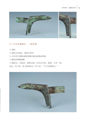 %u7b2c%u4e94%u90e8%u5206 %u56fd%u5bb6%u7ea7%u6587%u7269 13171. %u738b%u5b50%u53cd%u9752%u94dc%u6208 %u4e00%u7ea7%u6587%u7269%u25cb %u6625%u79cb%u25cb %u901a%u957f22.6%u5398%u7c73%u3001%u901a%u5bbd14%u5398%u7c73%u25cb 1973%u5e744%u6708%u6ed5%u53bf%u57ce%u90ca%u4f9b%u9500%u793e%u5e9f%u54c1%u6536%u8d2d%u7ad9%u5f81%u96c6%u25cb %u6ed5%u5dde%u5e02%u535a%u7269%u9986%u85cf%u25cb %u63f4%u72ed%u957f%uff0c%u4e2d%u8d77%u810a%uff0c%u524d%u950b%u5c16%u9510%uff1b%u5185%u5448%u957f%u65b9%u5f62%uff0c%u751a%u9614%uff0c%u4e0a%u6709%u4e00%u7a7f%uff1b%u80e1%u957f%uff0c%u6709%u4e09%u7a7f%uff0c%u80e1%u4e0a%u94f8%u6709%u94ed%u6587%u4e00%u884c%u516d%u5b57%uff1a%u201c%u738b%u5b50%u53cd%u94f8%u5bdd%u6208%u3002%u201d