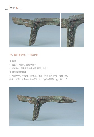 134%u6ed5TENGZHOUYINXIANG%u5dde%u5370%u8c6174. %u8656%u53f0%u9752%u94dc%u6208 %u4e00%u7ea7%u6587%u7269%u25cb %u6218%u56fd%u25cb %u901a%u957f27.3%u5398%u7c73%u3001%u901a%u5bbd14%u5398%u7c73%u25cb 1979%u5e7411%u6708%u6ed5%u5dde%u5e02%u59dc%u5c6f%u9547%u5e84%u91cc%u897f%u6751%u51fa%u571f%u25cb %u6ed5%u5dde%u5e02%u535a%u7269%u9986%u85cf%u25cb %u5176%u63f4%u7a84%u5e73%uff0c%u4e2d%u8d77%u810a%uff0c%u524d%u950b%u5448%u4e09%u89d2%u5f62%uff1b%u659c%u89d2%u957f%u65b9%u5f62%u5185%uff0c%u5185%u6709%u4e00%u7a7f%uff1b%u957f%u80e1%uff0c%u4e09%u7a7f%uff0c%u80e1%u4e0a%u94f8%u94ed%u6587%u4e00%u884c%u4e03%u5b57%uff1a%u201c%u8656%u53f0%u4e18%u5b50%u4f11%u4e4b%u4fc8%uff08%u9020%uff09%u3002%u201d
