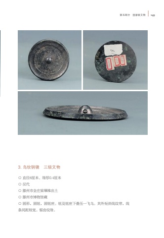 %u7b2c%u4e94%u90e8%u5206 %u56fd%u5bb6%u7ea7%u6587%u7269 1493. %u9e1f%u7eb9%u94dc%u955c %u4e09%u7ea7%u6587%u7269%u25cb %u76f4%u5f848%u5398%u7c73%u3001%u7f18%u539a0.4%u5398%u7c73%u25cb %u6c49%u4ee3%u25cb %u6ed5%u5dde%u5e02%u91d1%u5e84%u6881%u580c%u5806%u51fa%u571f%u25cb %u6ed5%u5dde%u5e02%u535a%u7269%u9986%u85cf%u25cb %u5706%u5f62%uff0c%u5706%u94ae%uff0c%u5706%u94ae%u5ea7%u3002%u94ae%u53ca%u94ae%u5ea7%u4e0b%u53e0%u538b%u4e00%u98de%u9e1f%u3002%u5176%u5916%u77ed%u659c%u7ebf%u7eb9%u5e26%uff0c%u7ebf%u6761%u95f4%u8ddd%u8f83%u5bbd%u3002%u952f%u9f7f%u7eb9%u7f18%u3002
