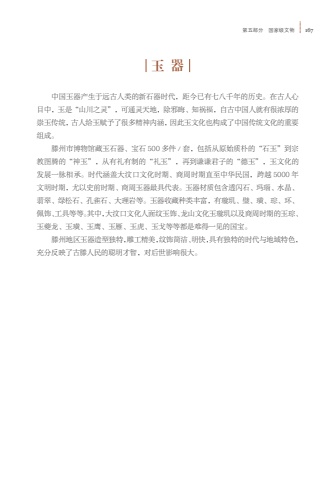 %u7b2c%u4e94%u90e8%u5206 %u56fd%u5bb6%u7ea7%u6587%u7269 167%u7389%u2002 %u5668%u4e2d%u56fd%u7389%u5668%u4ea7%u751f%u4e8e%u8fdc%u53e4%u4eba%u7c7b%u7684%u65b0%u77f3%u5668%u65f6%u4ee3%uff0c%u8ddd%u4eca%u5df2%u6709%u4e03%u516b%u5343%u5e74%u7684%u5386%u53f2%u3002%u5728%u53e4%u4eba%u5fc3%u76ee%u4e2d%uff0c%u7389%u662f%u201c%u5c71%u5ddd%u4e4b%u7075%u201d%uff0c%u53ef%u901a%u7075%u5929%u5730%uff0c%u9664%u90aa%u6666%u3001%u77e5%u7978%u798f%uff0c%u81ea%u53e4%u4e2d%u56fd%u4eba%u5c31%u6709%u5f88%u6d53%u539a%u7684%u5d07%u7389%u4f20%u7edf%uff0c%u53e4%u4eba%u7ed9%u7389%u8d4b%u4e88%u4e86%u5f88%u591a%u7cbe%u795e%u5185%u6db5%uff0c%u56e0%u6b64%u7389%u6587%u5316%u4e5f%u6784%u6210%u4e86%u4e2d%u56fd%u4f20%u7edf%u6587%u5316%u7684%u91cd%u8981%u7ec4%u6210%u3002%u6ed5%u5dde%u5e02%u535a%u7269%u9986%u85cf%u7389%u77f3%u5668%u3001%u5b9d%u77f3 500 %u591a%u4ef6 / %u5957%uff0c%u5305%u62ec%u4ece%u539f%u59cb%u8d28%u6734%u7684%u201c%u77f3%u7389%u201d%u5230%u5b97%u6559%u56fe%u817e%u7684%u201c%u795e%u7389%u201d%uff0c%u4ece%u6709%u793c%u6709%u5236%u7684%u201c%u793c%u7389%u201d%uff0c%u518d%u5230%u8c26%u8c26%u541b%u5b50%u7684%u201c%u5fb7%u7389%u201d%uff0c%u7389%u6587%u5316%u7684%u53d1%u5c55%u4e00%u8109%u76f8%u627f%u3002%u65f6%u4ee3%u6db5%u76d6%u5927%u6c76%u53e3%u6587%u5316%u65f6%u671f%u3001%u5546%u5468%u65f6%u671f%u76f4%u81f3%u4e2d%u534e%u6c11%u56fd%uff0c%u8de8%u8d8a 5000 %u5e74%u6587%u660e%u65f6%u671f%uff0c%u5c24%u4ee5%u53f2%u524d%u65f6%u671f%u3001%u5546%u5468%u7389%u5668%u6700%u5177%u4ee3%u8868%u3002%u7389%u5668%u6750%u8d28%u5305%u542b%u900f%u95ea%u77f3%u3001%u739b%u7459%u3001%u6c34%u6676%u3001%u7fe1%u7fe0%u3001%u7eff%u677e%u77f3%u3001%u5b54%u96c0%u77f3%u3001%u5927%u7406%u5ca9%u7b49%u3002%u7389%u5668%u6536%u85cf%u79cd%u7c7b%u4e30%u5bcc%uff0c%u6709%u7487%u7391%u3001%u74a7%u3001%u749c%u3001%u742e%u3001%u73af%u3001%u4f69%u9970%u3001%u5de5%u5177%u7b49%u7b49%u3002%u5176%u4e2d%uff0c%u5927%u6c76%u53e3%u6587%u5316%u4eba%u9762%u7eb9%u7389%u9970%u3001%u9f99%u5c71%u6587%u5316%u7389%u7487%u7391%u4ee5%u53ca%u5546%u5468%u65f6%u671f%u7684%u7389%u742e%u3001%u7389%u5914%u9f99%u3001%u7389%u749c%u3001%u7389%u9e70%u3001%u7389%u96c1%u3001%u7389%u864e%u3001%u7389%u6208%u7b49%u7b49%u90fd%u662f%u96be%u5f97%u4e00%u89c1%u7684%u56fd%u5b9d%u3002%u6ed5%u5dde%u5730%u533a%u7389%u5668%u9020%u578b%u72ec%u7279%uff0c%u96d5%u5de5%u7cbe%u7f8e%uff0c%u7eb9%u9970%u7b80%u6d01%u3001%u660e%u5feb%uff0c%u5177%u6709%u72ec%u7279%u7684%u65f6%u4ee3%u4e0e%u5730%u57df%u7279%u8272%uff0c%u5145%u5206%u53cd%u6620%u4e86%u53e4%u6ed5%u4eba%u6c11%u7684%u806a%u660e%u624d%u667a%uff0c%u5bf9%u540e%u4e16%u5f71%u54cd%u5f88%u5927%u3002