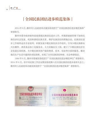 12%u6ed5TENGZHOUYINXIANG%u5dde%u5370%u8c61%u5168%u56fd%u6c11%u65cf%u56e2%u7ed3%u8fdb%u6b65%u6a21%u8303%u96c6%u4f532014%u5e749%u6708%uff0c%u6ed5%u5dde%u5e02%u4eba%u6c11%u653f%u5e9c%u518d%u6b21%u88ab%u56fd%u52a1%u9662%u6388%u4e88%u201c%u5168%u56fd%u6c11%u65cf%u56e2%u7ed3%u8fdb%u6b65%u6a21%u8303%u96c6%u4f53%u201d%u8363%u8a89%u79f0%u53f7%u3002%u6ed5%u5dde%u5e02%u59d4%u5e02%u653f%u5e9c%u59cb%u7ec8%u9ad8%u5ea6%u91cd%u89c6%u6c11%u65cf%u56e2%u7ed3%u8fdb%u6b65%u5de5%u4f5c%uff0c%u79ef%u6781%u63a2%u7d22%u65b0%u5f62%u52bf%u4e0b%u52a0%u5feb%u6c11%u65cf%u7ecf%u6d4e%u793e%u4f1a%u53d1%u5c55%u3001%u5de9%u56fa%u548c%u8c10%u7684%u6c11%u65cf%u5173%u7cfb%u3001%u7ef4%u62a4%u6c11%u65cf%u56e2%u7ed3%u7684%u63aa%u65bd%u529e%u6cd5%uff0c%u6c11%u65cf%u56e2%u7ed3%u8fdb%u6b65%u5de5%u4f5c%u59cb%u7ec8%u8d70%u5728%u5168%u7701%u524d%u5217%u3002%u79ef%u6781%u53d1%u5c55%u5c11%u6570%u6c11%u65cf%u7ecf%u6d4e%u5408%u4f5c%u7ec4%u7ec7%uff0c%u5f15%u5bfc%u5c11%u6570%u6c11%u65cf%u7fa4%u4f17%u5174%u529e%u9910%u996e%u3001%u6e05%u771f%u98df%u54c1%u52a0%u5de5%u53ca%u670d%u52a1%u4e1a%u3002%u5927%u529b%u5b9e%u65bd%u6c11%u751f%u5de5%u7a0b%uff0c%u5efa%u7acb%u4e86%u5c11%u6570%u6c11%u65cf%u7ecf%u6d4e%u793e%u4f1a%u53d1%u5c55%u957f%u6548%u673a%u5236%uff0c%u4e3a%u5c11%u6570%u6c11%u65cf%u8d2b%u56f0%u6237%u63d0%u4f9b%u7269%u8d28%u3001%u6280%u672f%u3001%u4fe1%u606f%u7b49%u65b9%u9762%u7684%u670d%u52a1%uff0c%u89e3%u51b3%u4ed6%u4eec%u751f%u4ea7%u751f%u6d3b%u4e2d%u9047%u5230%u7684%u5b9e%u9645%u56f0%u96be%uff0c%u5b9e%u73b0%u4e86%u5168%u5e02%u6c11%u65cf%u56e2%u7ed3%u548c%u7766%u3001%u793e%u4f1a%u548c%u8c10%u7a33%u5b9a%u30021994 %u5e74 9 %u6708%uff0c%u6ed5%u5dde%u5e02%u66fe%u88ab%u56fd%u52a1%u9662%u6388%u4e88%u201c%u5168%u56fd%u6c11%u65cf%u56e2%u7ed3%u8fdb%u6b65%u6a21%u8303%u5355%u4f4d%u201d%u8363%u8a89%u79f0%u53f7%u30022014 %u5e74 9 %u6708%uff0c%u5728%u4e2d%u592e%u6c11%u65cf%u5de5%u4f5c%u4f1a%u8bae%u66a8%u56fd%u52a1%u9662%u7b2c%u516d%u6b21%u5168%u56fd%u6c11%u65cf%u56e2%u7ed3%u8fdb%u6b65%u8868%u5f70%u5927%u4f1a%u4e0a%uff0c%u6ed5%u5dde%u5e02%u4eba%u6c11%u653f%u5e9c%u518d%u6b21%u88ab%u56fd%u52a1%u9662%u6388%u4e88%u201c%u5168%u56fd%u6c11%u65cf%u56e2%u7ed3%u8fdb%u6b65%u6a21%u8303%u96c6%u4f53%u201d%u8363%u8a89%u79f0%u53f7%u3002
