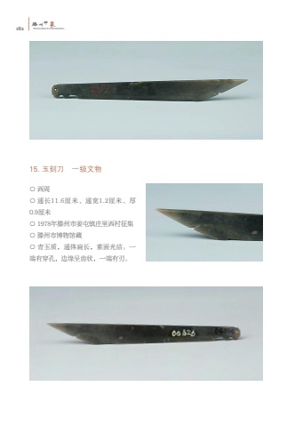 182%u6ed5TENGZHOUYINXIANG%u5dde%u5370%u8c6115. %u7389%u523b%u5200 %u4e00%u7ea7%u6587%u7269%u25cb %u897f%u5468%u25cb %u901a%u957f11.6%u5398%u7c73%u3001%u901a%u5bbd1.2%u5398%u7c73%u3001%u539a0.9%u5398%u7c73%u25cb 1978%u5e74%u6ed5%u5dde%u5e02%u59dc%u5c6f%u9547%u5e84%u91cc%u897f%u6751%u5f81%u96c6%u25cb %u6ed5%u5dde%u5e02%u535a%u7269%u9986%u85cf%u25cb %u9752%u7389%u8d28%uff0c%u901a%u4f53%u6241%u957f%uff0c%u7d20%u9762%u5149%u6d01%u3002%u4e00%u7aef%u6709%u7a7f%u5b54%uff0c%u8fb9%u7f18%u5448%u9f7f%u72b6%uff0c%u4e00%u7aef%u6709%u5203%u3002