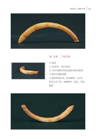 %u7b2c%u4e94%u90e8%u5206 %u56fd%u5bb6%u7ea7%u6587%u7269 19326. %u7389%u9c7c %u4e8c%u7ea7%u6587%u7269%u25cb %u897f%u5468%u25cb %u957f6%u5398%u7c73%u3001%u539a0.9%u5398%u7c73%u25cb 1976%u5e74%u6ed5%u5dde%u5e02%u59dc%u5c6f%u9547%u5e84%u91cc%u897f%u6751%u5f81%u96c6%u25cb %u6ed5%u5dde%u5e02%u535a%u7269%u9986%u85cf%u25cb %u901a%u4f53%u9970%u5377%u4e91%u7eb9%u3002%u62f1%u80cc%u8df3%u8dc3%uff0c%u5448C%u72b6%u3002%u5c3e%u5206%u53c9%u4e14%u4e0b%u5f2f%uff0c%u9c7c%u5634%u90e8%u6709%u4e00%u7a7f%u5b54%uff0c%u53ef%u4f9b%u4f69%u7cfb%u3002