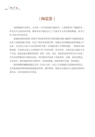 200%u6ed5TENGZHOUYINXIANG%u5dde%u5370%u8c61%u9676%u74f7%u5668%u6211%u56fd%u9676%u5668%u5386%u53f2%u60a0%u4e45%uff0c%u5927%u7ea6%u5728%u4e00%u4e07%u5e74%u524d%u7684%u65b0%u77f3%u5668%u65f6%u4ee3%uff0c%u4eba%u7c7b%u5c31%u53d1%u660e%u4e86%u5236%u9676%u6280%u672f%u3002%u4f5c%u4e3a%u5317%u8f9b%u6587%u5316%u7684%u547d%u540d%u5730%uff0c%u6ed5%u5dde%u5e02%u5317%u8f9b%u9057%u5740%u51fa%u571f%u4e86%u5927%u6279%u5317%u8f9b%u6587%u5316%u65f6%u671f%u7684%u9676%u5668%uff0c%u8ddd%u4eca%u5df2%u6709 7000 %u591a%u5e74%u7684%u5386%u53f2%u3002%u74f7%u5668%u662f%u6211%u56fd%u7684%u56fd%u7cb9%uff0c%u66f4%u662f%u4e2d%u534e%u6c11%u65cf%u5bf9%u4e16%u754c%u6587%u660e%u7684%u91cd%u8981%u8d21%u732e%u3002%u9676%u5668%u4f5c%u4e3a%u74f7%u5668%u7684%u524d%u8eab%uff0c%u4ece%u629f%u571f%u9020%u5668%u5230%u65bd%u4ee5%u5f69%u7ed8%uff0c%u7ecf%u8fc7%u4e86%u6f2b%u957f%u7684%u53d1%u5c55%u5386%u7a0b%uff0c%u74f7%u5668%u6b63%u662f%u5728%u9676%u5668%u53d1%u5c55%u7684%u57fa%u7840%u4e0a%u4ea7%u751f%u7684%u3002%u5927%u7ea6%u5728%u516c%u5143%u524d 16 %u4e16%u7eaa%u7684%u5546%u4ee3%u4e2d%u671f%uff0c%u4e2d%u56fd%u5c31%u51fa%u73b0%u4e86%u65e9%u671f%u7684%u74f7%u5668%uff0c%u4e00%u822c%u79f0%u5176%u4e3a%u539f%u59cb%u74f7%u5668%u3002%u4e2d%u56fd%u771f%u6b63%u610f%u4e49%u4e0a%u7684%u74f7%u5668%u4ea7%u751f%u4e8e%u4e1c%u6c49%u65f6%u671f%uff0c%u81f3%u5b8b%u4ee3%u65f6%uff0c%u540d%u74f7%u540d%u7a91%u5df2%u904d%u53ca%u5927%u534a%u4e2a%u4e2d%u56fd%uff0c%u662f%u74f7%u4e1a%u6700%u4e3a%u7e41%u8363%u7684%u65f6%u671f%u3002%u94a7%u7a91%u3001%u54e5%u7a91%u3001%u5b98%u7a91%u3001%u6c5d%u7a91%u548c%u5b9a%u7a91%u5e76%u79f0%u4e3a%u4e94%u5927%u540d%u7a91%u3002%u5143%u4ee3%u9752%u82b1%u548c%u91c9%u91cc%u7ea2%u7b49%u65b0%u54c1%u8fed%u51fa%u3002%u660e%u4ee3%u7ee7%u627f%u5e76%u53d1%u5c55%u4e86%u5b8b%u74f7%u4f20%u7edf%uff0c%u5ba3%u5fb7%u3001%u6210%u5316%u7a91%u5236%u54c1%uff0c%u5c24%u4e3a%u7a81%u51fa%u3002%u6e05%u4ee3%u74f7%u5668%u98ce%u683c%u53e4%u96c5%u6d51%u6734%uff0c%u6bd4%u524d%u65f6%u7a0d%u900a%uff0c%u5374%u80dc%u5728%u7cbe%u5de7%u534e%u4e3d%u3001%u7f8e%u5999%u7edd%u4f26%u3002%u3000%u6ed5%u5dde%u535a%u7269%u9986%u85cf%u9676%u74f7%u5668%u8fd1%u4e07%u4ef6%uff0c%u4ee5%u5317%u8f9b%u6587%u5316%u3001%u5927%u6c76%u53e3%u6587%u5316%u9676%u5668%u4ee5%u53ca%u539f%u59cb%u9752%u74f7%u89c1%u957f%uff0c%u5c24%u5176%u662f%u5546%u5468%u65f6%u671f%u7684%u539f%u59cb%u74f7%u5668%u9020%u578b%u591a%u6837%u3001%u5236%u4f5c%u7cbe%u7f8e%uff0c%u582a%u79f0%u5c71%u4e1c%u5730%u533a%u51fa%u571f%u539f%u59cb%u9752%u74f7%u7684%u4ee3%u8868%u4f5c%u54c1%uff0c%u5177%u6709%u5f88%u9ad8%u7684%u827a%u672f%u4ef7%u503c%u3002