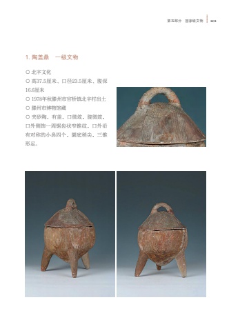 %u7b2c%u4e94%u90e8%u5206 %u56fd%u5bb6%u7ea7%u6587%u7269 2011. %u9676%u76d6%u9f0e %u4e00%u7ea7%u6587%u7269%u25cb %u5317%u8f9b%u6587%u5316%u25cb %u9ad837.5%u5398%u7c73%u3001%u53e3%u5f8423.5%u5398%u7c73%u3001%u8179%u6df116.6%u5398%u7c73%u25cb 1978%u5e74%u79cb%u6ed5%u5dde%u5e02%u5b98%u6865%u9547%u5317%u8f9b%u6751%u51fa%u571f%u25cb %u6ed5%u5dde%u5e02%u535a%u7269%u9986%u85cf%u25cb %u5939%u7802%u9676%uff0c%u6709%u76d6%uff0c%u53e3%u5fae%u655b%uff0c%u8179%u5fae%u9f13%uff0c%u53e3%u5916%u4fa7%u9970%u4e00%u5468%u952f%u9f7f%u72b6%u7a84%u9525%u7eb9%uff0c%u53e3%u5916%u6cbf%u6709%u5bf9%u79f0%u7684%u5c0f%u9f3b%u56db%u4e2a%uff0c%u571c%u5e95%u7a0d%u5c16%uff0c%u4e09%u9525%u5f62%u8db3%u3002