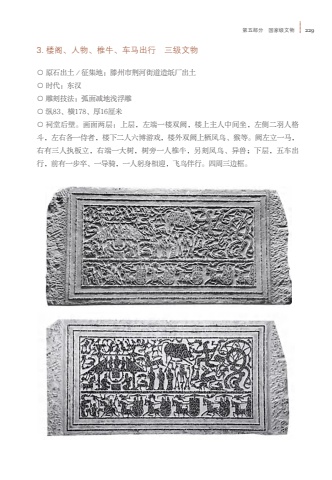%u7b2c%u4e94%u90e8%u5206 %u56fd%u5bb6%u7ea7%u6587%u7269 2293. %u697c%u9601%u3001%u4eba%u7269%u3001%u690e%u725b%u3001%u8f66%u9a6c%u51fa%u884c %u4e09%u7ea7%u6587%u7269%u25cb %u539f%u77f3%u51fa%u571f%uff0f%u5f81%u96c6%u5730%uff1a%u6ed5%u5dde%u5e02%u8346%u6cb3%u8857%u9053%u9020%u7eb8%u5382%u51fa%u571f%u25cb %u65f6%u4ee3%uff1a%u4e1c%u6c49%u25cb %u96d5%u523b%u6280%u6cd5%uff1a%u5f27%u9762%u51cf%u5730%u6d45%u6d6e%u96d5%u25cb %u7eb583%u3001%u6a2a178%u3001%u539a16%u5398%u7c73%u25cb %u7960%u5802%u540e%u58c1%u3002%u753b%u9762%u4e24%u5c42%uff1a%u4e0a%u5c42%uff0c%u5de6%u7aef%u4e00%u697c%u53cc%u9619%uff0c%u697c%u4e0a%u4e3b%u4eba%u4e2d%u95f4%u5750%uff0c%u5de6%u4fa7%u4e8c%u7fbd%u4eba%u683c%u6597%uff0c%u5de6%u53f3%u5404%u4e00%u4f8d%u8005%uff0c%u697c%u4e0b%u4e8c%u4eba%u516d%u535a%u6e38%u620f%uff0c%u697c%u5916%u53cc%u9619%u4e0a%u6816%u51e4%u9e1f%u3001%u7334%u7b49%u3002%u9619%u5de6%u7acb%u4e00%u9a6c%uff0c%u53f3%u6709%u4e09%u4eba%u6267%u677f%u7acb%uff0c%u53f3%u7aef%u4e00%u5927%u6811%uff0c%u6811%u65c1%u4e00%u4eba%u690e%u725b%uff0c%u53e6%u523b%u51e4%u9e1f%u3001%u5f02%u517d%uff1b%u4e0b%u5c42%uff0c%u4e94%u8f66%u51fa%u884c%uff0c%u524d%u6709%u4e00%u6b65%u5352%u3001%u4e00%u5bfc%u9a91%uff0c%u4e00%u4eba%u8eac%u8eab%u76f8%u8fce%uff0c%u98de%u9e1f%u4f34%u884c%u3002%u56db%u5468%u4e09%u8fb9%u6846%u3002