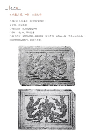 230%u6ed5TENGZHOUYINXIANG%u5dde%u5370%u8c614. %u4f0f%u7fb2%u5973%u5a32%u3001%u795e%u7269 %u4e09%u7ea7%u6587%u7269%u25cb %u539f%u77f3%u51fa%u571f/%u5f81%u96c6%u5730%uff1a%u6ed5%u5dde%u5e02%u9f99%u9633%u9547%u51fa%u571f%u25cb %u65f6%u4ee3%uff1a%u4e1c%u6c49%u665a%u671f%u25cb %u96d5%u523b%u6280%u6cd5%uff1a%u5f27%u9762%u51cf%u5730%u6d45%u6d6e%u96d5%u25cb %u7eb592%u3001%u6a2a135%u3001%u539a20%u5398%u7c73%u25cb %u7960%u5802%u540e%u58c1%u3002%u753b%u9762%u4e2d%u95f4%u523b%u4e00%u795e%u7269%u8e72%u8e1e%uff0c%u4e24%u8db3%u6709%u8e7c%uff0c%u53f3%u4fa7%u6709%u5973%u5a32%uff0c%u7686%u624b%u89e6%u795e%u7269%u5934%u89d2%uff0c%u5176%u5c3e%u4e0e%u795e%u7269%u4e24%u817f%u76f8%u4ea4%u3002%u56db%u5468%u4e09%u8fb9%u6846%u3002