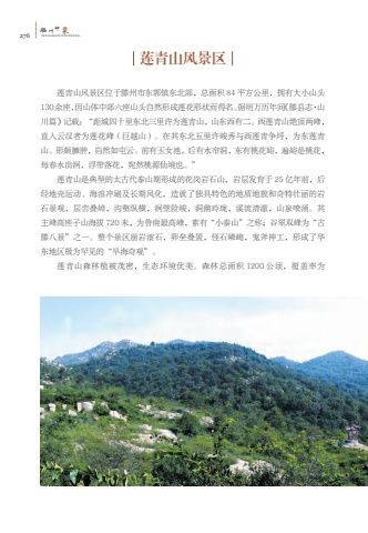 276%u6ed5TENGZHOUYINXIANG%u5dde%u5370%u8c61%u83b2%u9752%u5c71%u98ce%u666f%u533a%u83b2%u9752%u5c71%u98ce%u666f%u533a%u4f4d%u4e8e%u6ed5%u5dde%u5e02%u4e1c%u90ed%u9547%u4e1c%u5317%u90e8%uff0c%u603b%u9762%u79ef 84 %u5e73%u65b9%u516c%u91cc%uff0c%u62e5%u6709%u5927%u5c0f%u5c71%u5934130%u4f59%u5ea7%uff0c%u56e0%u5c71%u4f53%u4e2d%u90e8%u516d%u5ea7%u5c71%u5934%u81ea%u7136%u5f62%u6210%u83b2%u82b1%u5f62%u72b6%u800c%u5f97%u540d%u3002%u636e%u660e%u4e07%u5386%u5e74%u95f4%u300a%u6ed5%u53bf%u5fd7%u00b7%u5c71%u5ddd%u7bc7%u300b%u8bb0%u8f7d%uff1a%u201c%u8ddd%u57ce%u56db%u5341%u91cc%u4e1c%u5317%u4e09%u91cc%u8bb8%u4e3a%u83b2%u9752%u5c71%uff0c%u5c71%u4e1c%u897f%u6709%u4e8c%u3002%u897f%u83b2%u9752%u5c71%u7edd%u9876%u4e24%u5cf0%uff0c%u76f4%u5165%u4e91%u6c49%u8005%u4e3a%u83b2%u82b1%u5cf0%uff08%u5de8%u8d8a%u5c71%uff09%u3002%u5728%u5176%u4e1c%u5317%u4e94%u91cc%u8bb8%u5cfb%u79c0%u4e0e%u897f%u83b2%u9752%u4e89%u57d2%uff0c%u4e3a%u4e1c%u83b2%u9752%u5c71%u3002%u5f62%u9887%u81c3%u80bf%uff0c%u5cbf%u7136%u5982%u5c6f%u4e91%u3002%u524d%u6709%u7389%u5973%u6c60%uff0c%u540e%u6709%u6c34%u5e18%u6d1e%uff0c%u4e1c%u6709%u6843%u82b1%u5cea%uff0c%u904d%u5cea%u662f%u6843%u82b1%uff0c%u6bcf%u6625%u6c34%u51fa%u6da7%uff0c%u6d6e%u5e26%u843d%u82b1%uff0c%u5b9b%u7136%u6843%u6e90%u4ed9%u5883%u4e5f%u3002%u201d%u83b2%u9752%u5c71%u662f%u5178%u578b%u7684%u592a%u53e4%u4ee3%u6cf0%u5c71%u671f%u5f62%u6210%u7684%u82b1%u5c97%u5ca9%u77f3%u5c71%uff0c%u5ca9%u5c42%u53d1%u80b2%u4e8e 25 %u4ebf%u5e74%u524d%uff0c%u540e%u7ecf%u5730%u58f3%u8fd0%u52a8%u3001%u6d77%u6d6a%u51b2%u5237%u53ca%u957f%u671f%u98ce%u5316%uff0c%u9020%u5c31%u4e86%u72ec%u5177%u7279%u8272%u7684%u5730%u8d28%u5730%u8c8c%u548c%u5947%u7279%u58ee%u4e3d%u7684%u5ca9%u77f3%u666f%u89c2%uff0c%u5c42%u5ce6%u53e0%u5d82%uff0c%u6c9f%u58d1%u7eb5%u6a2a%uff0c%u6da7%u58c1%u9669%u5cfb%uff0c%u6d1e%u5e7d%u73b2%u73d1%uff0c%u6eaa%u6d41%u6e05%u6f88%uff0c%u5c71%u6cc9%u55b7%u6d8c%u3002%u5176%u4e3b%u5cf0%u9ad8%u5ea7%u5b50%u5c71%u6d77%u62d4 720 %u7c73%uff0c%u4e3a%u9c81%u5357%u6700%u9ad8%u5cf0%uff0c%u7d20%u6709%u201c%u5c0f%u6cf0%u5c71%u201d%u4e4b%u79f0%uff1b%u8c37%u7fe0%u53cc%u5cf0%u4e3a%u201c%u53e4%u6ed5%u516b%u666f%u201d%u4e4b%u4e00%u3002%u6574%u4e2a%u666f%u533a%u5d29%u5ca9%u6eda%u77f3%uff0c%u5375%u5792%u53e0%u7f6e%uff0c%u602a%u77f3%u5d99%u5ccb%uff0c%u9b3c%u65a7%u795e%u5de5%uff0c%u5f62%u6210%u4e86%u534e%u4e1c%u5730%u533a%u6781%u4e3a%u7f55%u89c1%u7684%u201c%u65f1%u6d77%u5947%u89c2%u201d%u3002%u83b2%u9752%u5c71%u68ee%u6797%u690d%u88ab%u8302%u5bc6%uff0c%u751f%u6001%u73af%u5883%u4f18%u7f8e%u3002%u68ee%u6797%u603b%u9762%u79ef 1200 %u516c%u9877%uff0c%u8986%u76d6%u7387%u4e3a