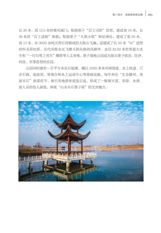 %u7b2c%u516b%u90e8%u5206 %u56fd%u5bb6%u7ea7%u65c5%u6e38%u54c1%u724c 283%u957f 29 %u7c73%u3001%u9ad8 13.5 %u7c73%u7684%u79e6%u98ce%u57ce%u95e8%uff1b%u6839%u636e%u58a8%u5b50%u201c%u767e%u5de5%u53f8%u804c%u201d%u601d%u60f3%uff0c%u5efa%u6210%u5bbd 10 %u7c73%uff0c%u957f36 %u7c73%u7684%u201c%u767e%u5de5%u9020%u8239%u201d%u8239%u822b%uff1b%u6839%u636e%u58a8%u5b50%u201c%u5927%u53d6%u5c0f%u53d6%u201d%u8fa9%u8bc1%u7406%u8bba%uff0c%u5efa%u6210%u4e86%u5bbd 30 %u7c73%u3001%u9ad8 13 %u7c73%u3001%u7531 3000 %u4f59%u5428%u5929%u7136%u77f3%u6750%u780c%u6210%u7684%u5927%u53d6%u5c71%u98de%u7011%uff1b%u8fd8%u5efa%u6210%u4e86%u957f 50 %u7c73%u201cM%u201d%u9020%u578b%u7684%u79d1%u5723%u5f69%u8679%u6865%u3001%u6c49%u4ee3%u98ce%u683c%u7070%u74e6%u98de%u6a90%u6597%u62f1%u98ce%u683c%u7684%u51e4%u6816%u4ead%u3001%u76f4%u5f84 22.02 %u7c73%u4e16%u754c%u6700%u5927%u6c34%u8f66%u548c%u201c%u4e00%u884c%u767d%u9e6d%u4e0a%u9752%u5929%u201d%u96d5%u5851%u7b49%u4eba%u6587%u666f%u89c2%u3002%u58a8%u5b50%u6e7f%u5730%u516c%u56ed%u6210%u4e3a%u5c55%u793a%u58a8%u5b50%u653f%u6cbb%u3001%u7ecf%u6d4e%u3001%u79d1%u6280%u3001%u519b%u4e8b%u601d%u60f3%u7684%u4e50%u56ed%u3002%u516c%u56ed%u540c%u65f6%u5efa%u6709%u4e00%u4e07%u5e73%u65b9%u7c73%u91d1%u77f3%u94f6%u6ee9%uff0c%u8f85%u4ee5 2500 %u591a%u7c73%u73af%u6e56%u7eff%u9053%u3001%u6c34%u4e0a%u6808%u9053%u3001%u6c40%u6b65%u77f3%u8def%u3001%u6ea2%u6d41%u575d%u3001%u9e6d%u89c2%u53f0%u548c%u6c34%u4e0a%u8fd0%u52a8%u4e2d%u5fc3%u7b49%u57fa%u7840%u8bbe%u65bd%uff0c%u6bcf%u5e74%u4e3e%u529e%u201c%u751f%u6001%u6ed5%u5dde%u3001%u7f8e%u4e3d%u6728%u77f3%u201d%u6cb9%u83dc%u82b1%u8282%uff0c%u5438%u5f15%u5404%u5730%u6e38%u5ba2%u6d41%u8fde%u5fd8%u8fd4%uff0c%u5f62%u6210%u4e86%u4e00%u5e45%u5e45%u5929%u84dd%u3001%u8349%u7eff%u3001%u6c34%u6e05%u3001%u6e38%u4eba%u4e50%u7684%u6021%u4eba%u753b%u5377%uff0c%u4f53%u73b0%u201c%u5c71%u6c34%u6728%u77f3%u58a8%u5b50%u6e56%u201d%u7684%u65e0%u7a77%u9b45%u529b%u3002
