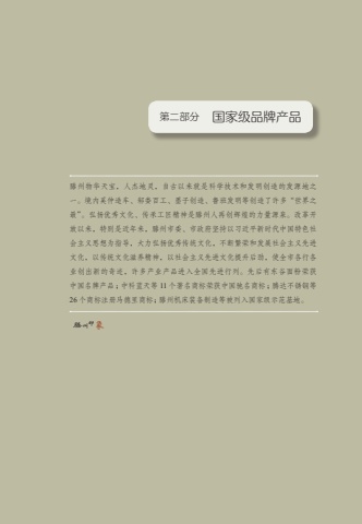%u7b2c%u4e8c%u90e8%u5206 %u56fd%u5bb6%u7ea7%u54c1%u724c%u4ea7%u54c1 23%u6ed5%u5dde%u7269%u534e%u5929%u5b9d%uff0c%u4eba%u6770%u5730%u7075%uff0c%u81ea%u53e4%u4ee5%u6765%u5c31%u662f%u79d1%u5b66%u6280%u672f%u548c%u53d1%u660e%u521b%u9020%u7684%u53d1%u6e90%u5730%u4e4b%u4e00%u3002%u5883%u5185%u595a%u4ef2%u9020%u8f66%u3001%u90be%u5a04%u767e%u5de5%u3001%u58a8%u5b50%u521b%u9020%u3001%u9c81%u73ed%u53d1%u660e%u7b49%u521b%u9020%u4e86%u8bb8%u591a%u201c%u4e16%u754c%u4e4b%u6700%u201d%u3002%u5f18%u626c%u4f18%u79c0%u6587%u5316%u3001%u4f20%u627f%u5de5%u5320%u7cbe%u795e%u662f%u6ed5%u5dde%u4eba%u518d%u521b%u8f89%u714c%u7684%u529b%u91cf%u6e90%u6cc9%u3002%u6539%u9769%u5f00%u653e%u4ee5%u6765%uff0c%u7279%u522b%u662f%u8fd1%u5e74%u6765%uff0c%u6ed5%u5dde%u5e02%u59d4%u3001%u5e02%u653f%u5e9c%u575a%u6301%u4ee5%u4e60%u8fd1%u5e73%u65b0%u65f6%u4ee3%u4e2d%u56fd%u7279%u8272%u793e%u4f1a%u4e3b%u4e49%u601d%u60f3%u4e3a%u6307%u5bfc%uff0c%u5927%u529b%u5f18%u626c%u4f18%u79c0%u4f20%u7edf%u6587%u5316%uff0c%u4e0d%u65ad%u7e41%u8363%u548c%u53d1%u5c55%u793e%u4f1a%u4e3b%u4e49%u5148%u8fdb%u6587%u5316%uff0c%u4ee5%u4f20%u7edf%u6587%u5316%u6ecb%u517b%u7cbe%u795e%uff0c%u4ee5%u793e%u4f1a%u4e3b%u4e49%u5148%u8fdb%u6587%u5316%u63d0%u5347%u540e%u52b2%uff0c%u4f7f%u5168%u5e02%u5404%u884c%u5404%u4e1a%u521b%u51fa%u65b0%u7684%u5947%u8ff9%uff0c%u8bb8%u591a%u4ea7%u4e1a%u4ea7%u54c1%u8fdb%u5165%u5168%u56fd%u5148%u8fdb%u884c%u5217%u3002%u5148%u540e%u6709%u4e1c%u8c37%u9762%u7c89%u8363%u83b7%u4e2d%u56fd%u540d%u724c%u4ea7%u54c1%uff1b%u4e2d%u79d1%u84dd%u5929%u7b49 11 %u4e2a%u8457%u540d%u5546%u6807%u8363%u83b7%u4e2d%u56fd%u9a70%u540d%u5546%u6807%uff1b%u817e%u8fbe%u4e0d%u9508%u94a2%u7b4926 %u4e2a%u5546%u6807%u6ce8%u518c%u9a6c%u5fb7%u91cc%u5546%u6807%uff1b%u6ed5%u5dde%u673a%u5e8a%u88c5%u5907%u5236%u9020%u7b49%u88ab%u5217%u5165%u56fd%u5bb6%u7ea7%u793a%u8303%u57fa%u5730%u3002%u7b2c%u4e8c%u90e8%u5206%u2003 %u56fd%u5bb6%u7ea7%u54c1%u724c%u4ea7%u54c1%u6ed5%u5dde%u5370%u8c61