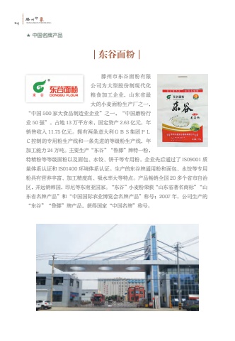 24%u6ed5TENGZHOUYINXIANG%u5dde%u5370%u8c61%u2605 %u4e2d%u56fd%u540d%u724c%u4ea7%u54c1%u4e1c%u8c37%u9762%u7c89%u6ed5%u5dde%u5e02%u4e1c%u8c37%u9762%u7c89%u6709%u9650%u516c%u53f8%u4e3a%u5927%u578b%u80a1%u4efd%u5236%u73b0%u4ee3%u5316%u7cae%u98df%u52a0%u5de5%u4f01%u4e1a%uff0c%u5c71%u4e1c%u7701%u6700%u5927%u7684%u5c0f%u9ea6%u9762%u7c89%u751f%u4ea7%u5382%u4e4b%u4e00%uff0c%u201c%u4e2d%u56fd 500 %u5bb6%u5927%u98df%u54c1%u5236%u9020%u4e1a%u4f01%u4e1a%u201d%u4e4b%u4e00%uff0c%u201c%u4e2d%u56fd%u78e8%u7c89%u884c%u4e1a 50 %u5f3a%u201d%u3002%u5360%u5730 13 %u4e07%u5e73%u65b9%u7c73%uff0c%u56fa%u5b9a%u8d44%u4ea7 2.63 %u4ebf%u5143%uff0c%u5e74%u9500%u552e%u6536%u5165 11.75 %u4ebf%u5143%u3002%u62e5%u6709%u4e24%u6761%u610f%u5927%u5229%uff27%uff22%uff33%u96c6%u56e2%uff30%uff2c%uff23%u63a7%u5236%u7684%u4e13%u7528%u7c89%u751f%u4ea7%u7ebf%u548c%u4e00%u6761%u5148%u8fdb%u7684%u7b49%u7ea7%u7c89%u751f%u4ea7%u7ebf%uff0c%u5e74%u52a0%u5de5%u80fd%u529b 24 %u4e07%u5428%u3002%u4e3b%u8981%u751f%u4ea7%u201c%u4e1c%u8c37%u201d%u201c%u9c81%u6ed5%u201d%u724c%u7279%u4e00%u7c89%uff0c%u7279%u7cbe%u7c89%u7b49%u7b49%u7ea7%u9762%u7c89%u4ee5%u53ca%u9762%u5305%u3001%u6c34%u997a%u3001%u997c%u5e72%u7b49%u4e13%u7528%u7c89%u3002%u4f01%u4e1a%u5148%u540e%u901a%u8fc7%u4e86 IS09001 %u8d28%u91cf%u4f53%u7cfb%u8ba4%u8bc1%u548c IS01400 %u73af%u5883%u4f53%u7cfb%u8ba4%u8bc1%u3002%u751f%u4ea7%u7684%u4e1c%u8c37%u724c%u901a%u7528%u7c89%u548c%u9762%u5305%u3001%u6c34%u997a%u7b49%u4e13%u7528%u7c89%u5177%u6709%u8425%u517b%u4e30%u5bcc%u3001%u52a0%u5de5%u7cbe%u5ea6%u9ad8%u3001%u5438%u6c34%u7387%u5927%u7b49%u7279%u70b9%u3002%u4ea7%u54c1%u7545%u9500%u5168%u56fd 20 %u591a%u4e2a%u7701%u5e02%u81ea%u6cbb%u533a%uff0c%u5e76%u8fdc%u9500%u97e9%u56fd%uff0c%u5370%u5c3c%u7b49%u4e1c%u5357%u4e9a%u56fd%u5bb6%u3002%u201c%u4e1c%u8c37%u201d%u5c0f%u9ea6%u7c89%u8363%u83b7%u201c%u5c71%u4e1c%u7701%u8457%u540d%u5546%u6807%u201d%u201c%u5c71%u4e1c%u7701%u540d%u724c%u4ea7%u54c1%u201d%u548c%u201c%u4e2d%u56fd%u56fd%u9645%u519c%u4e1a%u535a%u89c8%u4f1a%u540d%u724c%u4ea7%u54c1%u201d%u79f0%u53f7%uff1b2007 %u5e74%uff0c%u516c%u53f8%u751f%u4ea7%u7684%u201c%u4e1c%u8c37%u201d%u201c%u9c81%u6ed5%u201d%u724c%u4ea7%u54c1%uff0c%u83b7%u5f97%u56fd%u5bb6%u201c%u4e2d%u56fd%u540d%u724c%u201d%u79f0%u53f7%u3002