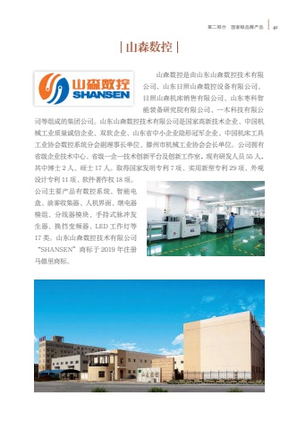 %u7b2c%u4e8c%u90e8%u5206 %u56fd%u5bb6%u7ea7%u54c1%u724c%u4ea7%u54c1 41%u5c71%u68ee%u6570%u63a7%u5c71%u68ee%u6570%u63a7%u662f%u7531%u5c71%u4e1c%u5c71%u68ee%u6570%u63a7%u6280%u672f%u6709%u9650%u516c%u53f8%u3001%u5c71%u4e1c%u65e5%u7167%u5c71%u68ee%u6570%u63a7%u8bbe%u5907%u6709%u9650%u516c%u53f8%u3001%u65e5%u7167%u5c71%u68ee%u673a%u5e8a%u9500%u552e%u6709%u9650%u516c%u53f8%u3001%u5c71%u4e1c%u67a3%u79d1%u667a%u80fd%u88c5%u5907%u7814%u7a76%u9662%u6709%u9650%u516c%u53f8%u3001%u4e00%u6728%u79d1%u6280%u6709%u9650%u516c%u53f8%u7b49%u7ec4%u6210%u7684%u96c6%u56e2%u516c%u53f8%u3002%u5c71%u4e1c%u5c71%u68ee%u6570%u63a7%u6280%u672f%u6709%u9650%u516c%u53f8%u662f%u56fd%u5bb6%u9ad8%u65b0%u6280%u672f%u4f01%u4e1a%u3001%u4e2d%u56fd%u673a%u68b0%u5de5%u4e1a%u8d28%u91cf%u8bda%u4fe1%u4f01%u4e1a%u3001%u53cc%u8f6f%u4f01%u4e1a%u3001%u5c71%u4e1c%u7701%u4e2d%u5c0f%u4f01%u4e1a%u9690%u5f62%u51a0%u519b%u4f01%u4e1a%u3001%u4e2d%u56fd%u673a%u5e8a%u5de5%u5177%u5de5%u4e1a%u534f%u4f1a%u6570%u63a7%u7cfb%u7edf%u5206%u4f1a%u526f%u7406%u4e8b%u957f%u5355%u4f4d%u3001%u6ed5%u5dde%u5e02%u673a%u68b0%u5de5%u4e1a%u534f%u4f1a%u4f1a%u957f%u5355%u4f4d%u3002%u516c%u53f8%u62e5%u6709%u7701%u7ea7%u4f01%u4e1a%u6280%u672f%u4e2d%u5fc3%u3001%u7701%u7ea7%u4e00%u4f01%u4e00%u6280%u672f%u521b%u65b0%u5e73%u53f0%u53ca%u521b%u65b0%u5de5%u4f5c%u5ba4%uff0c%u73b0%u6709%u7814%u53d1%u4eba%u5458 55 %u4eba%uff0c%u5176%u4e2d%u535a%u58eb 2 %u4eba%u3001%u7855%u58eb 17 %u4eba%u3002%u53d6%u5f97%u56fd%u5bb6%u53d1%u660e%u4e13%u5229 7 %u9879%u3001%u5b9e%u7528%u65b0%u578b%u4e13%u5229 29 %u9879%u3001%u5916%u89c2%u8bbe%u8ba1%u4e13%u5229 11 %u9879%u3001%u8f6f%u4ef6%u8457%u4f5c%u6743 18 %u9879%u3002%u516c%u53f8%u4e3b%u8981%u4ea7%u54c1%u6709%u6570%u63a7%u7cfb%u7edf%u3001%u667a%u80fd%u7535%u76d8%u3001%u6cb9%u96fe%u6536%u96c6%u5668%u3001%u4eba%u673a%u754c%u9762%u3001%u7ee7%u7535%u5668%u6a21%u7ec4%u3001%u5206%u7ebf%u5668%u6a21%u5757%u3001%u624b%u6301%u5f0f%u8109%u51b2%u53d1%u751f%u5668%u3001%u6362%u6321%u53d8%u9891%u5668%u3001LED %u5de5%u4f5c%u706f%u7b4917 %u7c7b%u3002%u5c71%u4e1c%u5c71%u68ee%u6570%u63a7%u6280%u672f%u6709%u9650%u516c%u53f8%u201cSHANSEN%u201d%u5546%u6807%u4e8e 2019 %u5e74%u6ce8%u518c%u9a6c%u5fb7%u91cc%u5546%u6807%u3002
