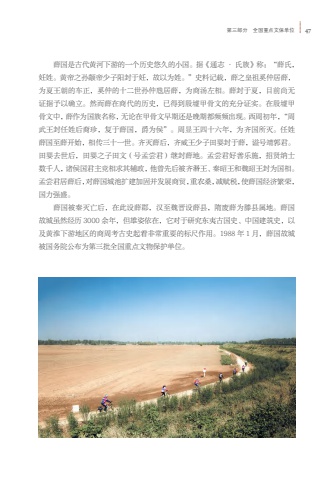 %u7b2c%u4e09%u90e8%u5206 %u5168%u56fd%u91cd%u70b9%u6587%u4fdd%u5355%u4f4d 47%u859b%u56fd%u662f%u53e4%u4ee3%u9ec4%u6cb3%u4e0b%u6e38%u7684%u4e00%u4e2a%u5386%u53f2%u60a0%u4e45%u7684%u5c0f%u56fd%u3002%u636e%u300a%u901a%u5fd7 %u2022 %u6c0f%u65cf%u300b%u79f0%uff1a%u201c%u859b%u6c0f%uff0c%u598a%u59d3%u3002%u9ec4%u5e1d%u4e4b%u5b59%u989b%u5e1d%u5c11%u5b50%u9633%u5c01%u4e8e%u598a%uff0c%u6545%u4ee5%u4e3a%u59d3%u3002%u201d%u53f2%u6599%u8bb0%u8f7d%uff0c%u859b%u4e4b%u7687%u7956%u595a%u4ef2%u5c45%u859b%uff0c%u4e3a%u590f%u738b%u671d%u7684%u8f66%u6b63%uff0c%u595a%u4ef2%u7684%u5341%u4e8c%u4e16%u5b59%u4ef2%u867a%u5c45%u859b%uff0c%u4e3a%u5546%u6c64%u5de6%u76f8%u3002%u859b%u5c01%u4e8e%u590f%uff0c%u76ee%u524d%u5c1a%u65e0%u8bc1%u636e%u4e88%u4ee5%u786e%u7acb%u3002%u7136%u800c%u859b%u5728%u5546%u4ee3%u7684%u5386%u53f2%uff0c%u5df2%u5f97%u5230%u6bb7%u589f%u7532%u9aa8%u6587%u7684%u5145%u5206%u8bc1%u5b9e%u3002%u5728%u6bb7%u589f%u7532%u9aa8%u6587%u4e2d%uff0c%u859b%u4f5c%u4e3a%u56fd%u65cf%u540d%u79f0%uff0c%u65e0%u8bba%u5728%u7532%u9aa8%u6587%u65e9%u671f%u8fd8%u662f%u665a%u671f%u90fd%u9891%u9891%u51fa%u73b0%u3002%u897f%u5468%u521d%u5e74%uff0c%u201c%u5468%u6b66%u738b%u5c01%u4efb%u59d3%u540e%u88d4%u73cd%uff0c%u590d%u4e8e%u859b%u56fd%uff0c%u7235%u4e3a%u4faf%u201d%u3002%u5468%u663e%u738b%u56db%u5341%u516d%u5e74%uff0c%u4e3a%u9f50%u56fd%u6240%u706d%u3002%u4efb%u59d3%u859b%u56fd%u81f3%u859b%u5f00%u59cb%uff0c%u76f8%u4f20%u4e09%u5341%u4e00%u4e16%u3002%u9f50%u706d%u859b%u540e%uff0c%u9f50%u5a01%u738b%u5c11%u5b50%u7530%u5a74%u5c01%u4e8e%u859b%uff0c%u8c25%u53f7%u9756%u90ed%u541b%u3002%u7530%u5a74%u53bb%u4e16%u540e%uff0c%u7530%u5a74%u4e4b%u5b50%u7530%u6587%uff08%u53f7%u5b5f%u5c1d%u541b%uff09%u7ee7%u5c01%u859b%u5730%u3002%u5b5f%u5c1d%u541b%u597d%u5584%u4e50%u65bd%uff0c%u62db%u8d24%u7eb3%u58eb%u6570%u5343%u4eba%uff0c%u8bf8%u4faf%u56fd%u541b%u4e3b%u7ade%u76f8%u6c42%u5176%u8f85%u653f%uff0c%u4ed6%u66fe%u5148%u540e%u88ab%u9f50%u6e63%u738b%u3001%u79e6%u662d%u738b%u548c%u9b4f%u662d%u738b%u5c01%u4e3a%u56fd%u76f8%u3002%u5b5f%u5c1d%u541b%u5c45%u859b%u540e%uff0c%u5bf9%u859b%u56fd%u57ce%u6c60%u6269%u5efa%u52a0%u56fa%u5e76%u53d1%u5c55%u5546%u8d38%uff0c%u91cd%u519c%u6851%uff0c%u51cf%u8d4b%u7a0e%uff0c%u4f7f%u859b%u56fd%u7ecf%u6d4e%u7e41%u8363%uff0c%u56fd%u529b%u5f3a%u76db%u3002%u859b%u56fd%u88ab%u79e6%u706d%u4ea1%u540e%uff0c%u5728%u6b64%u8bbe%u859b%u90e1%uff0c%u6c49%u81f3%u9b4f%u664b%u8bbe%u859b%u53bf%uff0c%u968b%u5e9f%u859b%u4e3a%u6ed5%u53bf%u5c5e%u5730%u3002%u859b%u56fd%u6545%u57ce%u867d%u7136%u7ecf%u5386 3000 %u4f59%u5e74%uff0c%u4f46%u96c4%u59ff%u4f9d%u5728%uff0c%u5b83%u5bf9%u4e8e%u7814%u7a76%u4e1c%u5937%u53e4%u56fd%u53f2%u3001%u4e2d%u56fd%u5efa%u7b51%u53f2%uff0c%u4ee5%u53ca%u9ec4%u6dee%u4e0b%u6e38%u5730%u533a%u7684%u5546%u5468%u8003%u53e4%u53f2%u8d77%u7740%u975e%u5e38%u91cd%u8981%u7684%u6807%u5c3a%u4f5c%u7528%u30021988 %u5e74 1 %u6708%uff0c%u859b%u56fd%u6545%u57ce%u88ab%u56fd%u52a1%u9662%u516c%u5e03%u4e3a%u7b2c%u4e09%u6279%u5168%u56fd%u91cd%u70b9%u6587%u7269%u4fdd%u62a4%u5355%u4f4d%u3002