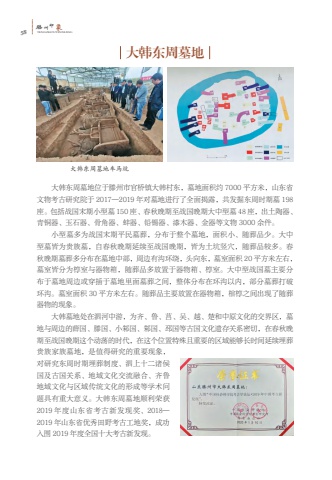 58%u6ed5TENGZHOUYINXIANG%u5dde%u5370%u8c61%u5927%u97e9%u4e1c%u5468%u5893%u5730%u4f4d%u4e8e%u6ed5%u5dde%u5e02%u5b98%u6865%u9547%u5927%u97e9%u6751%u4e1c%uff0c%u5893%u5730%u9762%u79ef%u7ea6 7000 %u5e73%u65b9%u7c73%uff0c%u5c71%u4e1c%u7701%u6587%u7269%u8003%u53e4%u7814%u7a76%u9662%u4e8e 2017%u20142019 %u5e74%u5bf9%u5893%u5730%u8fdb%u884c%u4e86%u5168%u9762%u63ed%u9732%uff0c%u5171%u53d1%u6398%u4e1c%u5468%u65f6%u671f%u5893 198%u5ea7%u3002%u5305%u62ec%u6218%u56fd%u672b%u671f%u5c0f%u578b%u5893 150 %u5ea7%u3001%u6625%u79cb%u665a%u671f%u81f3%u6218%u56fd%u665a%u671f%u5927%u4e2d%u578b%u5893 48 %u5ea7%uff0c%u51fa%u571f%u9676%u5668%u3001%u9752%u94dc%u5668%u3001%u7389%u77f3%u5668%u3001%u9aa8%u89d2%u5668%u3001%u868c%u5668%u3001%u94c5%u9521%u5668%u3001%u6f06%u6728%u5668%u3001%u91d1%u5668%u7b49%u6587%u7269 3000 %u4f59%u4ef6%u3002%u5c0f%u578b%u5893%u591a%u4e3a%u6218%u56fd%u672b%u671f%u5e73%u6c11%u5893%u846c%uff0c%u5206%u5e03%u4e8e%u6574%u4e2a%u5893%u5730%uff0c%u9762%u79ef%u5c0f%u3001%u968f%u846c%u54c1%u5c11%u3002%u5927%u4e2d%u578b%u5893%u7686%u4e3a%u8d35%u65cf%u5893%uff0c%u81ea%u6625%u79cb%u665a%u671f%u5ef6%u7eed%u81f3%u6218%u56fd%u665a%u671f%uff0c%u7686%u4e3a%u571f%u5751%u7ad6%u7a74%uff0c%u968f%u846c%u54c1%u8f83%u591a%u3002%u6625%u79cb%u665a%u671f%u5893%u846c%u591a%u5206%u5e03%u5728%u5893%u5730%u4e2d%u90e8%uff0c%u5468%u8fb9%u6709%u6c9f%u73af%u7ed5%uff0c%u5934%u5411%u4e1c%uff0c%u5893%u5ba4%u9762%u79ef 20 %u5e73%u65b9%u7c73%u5de6%u53f3%uff0c%u5893%u5ba4%u7686%u5206%u4e3a%u6901%u5ba4%u4e0e%u5668%u7269%u7bb1%uff0c%u968f%u846c%u54c1%u591a%u653e%u7f6e%u4e8e%u5668%u7269%u7bb1%u3001%u6901%u5ba4%u3002%u5927%u4e2d%u578b%u6218%u56fd%u5893%u4e3b%u8981%u5206%u5e03%u4e8e%u5893%u5730%u5468%u8fb9%u6216%u7a7f%u63d2%u4e8e%u5893%u5730%u91cc%u9762%u5893%u846c%u4e4b%u95f4%uff0c%u6574%u4f53%u5206%u5e03%u5728%u73af%u6c9f%u4ee5%u5185%uff0c%u90e8%u5206%u5893%u846c%u6253%u7834%u73af%u6c9f%u3002%u5893%u5ba4%u9762%u79ef 30 %u5e73%u65b9%u7c73%u5de6%u53f3%u3002%u968f%u846c%u54c1%u4e3b%u8981%u653e%u7f6e%u5728%u5668%u7269%u7bb1%uff0c%u68fa%u6901%u4e4b%u95f4%u51fa%u73b0%u4e86%u968f%u846c%u5668%u7269%u7684%u73b0%u8c61%u3002%u5927%u97e9%u5893%u5730%u5904%u5728%u6cd7%u6cb3%u4e2d%u6e38%uff0c%u4e3a%u9f50%u3001%u9c81%u3001%u8392%u3001%u5434%u3001%u8d8a%u3001%u695a%u548c%u4e2d%u539f%u6587%u5316%u7684%u4ea4%u754c%u533a%uff0c%u5893%u5730%u4e0e%u5468%u8fb9%u7684%u859b%u56fd%u3001%u6ed5%u56fd%u3001%u5c0f%u90be%u56fd%u3001%u90be%u56fd%u3001%u90b3%u56fd%u7b49%u53e4%u56fd%u6587%u5316%u9057%u5b58%u5173%u7cfb%u5bc6%u5207%uff0c%u5728%u6625%u79cb%u665a%u671f%u81f3%u6218%u56fd%u665a%u671f%u8fd9%u4e2a%u52a8%u8361%u7684%u65f6%u4ee3%uff0c%u5728%u8fd9%u4e2a%u4f4d%u7f6e%u7279%u6b8a%u4e14%u91cd%u8981%u7684%u533a%u57df%u80fd%u591f%u957f%u65f6%u95f4%u5ef6%u7eed%u57cb%u846c%u8d35%u65cf%u5bb6%u65cf%u5893%u5730%uff0c%u662f%u503c%u5f97%u7814%u7a76%u7684%u91cd%u8981%u73b0%u8c61%uff0c%u5bf9%u7814%u7a76%u4e1c%u5468%u65f6%u671f%u57cb%u846c%u5236%u5ea6%u3001%u6cd7%u4e0a%u5341%u4e8c%u8bf8%u4faf%u56fd%u53ca%u53e4%u56fd%u5173%u7cfb%u3001%u5730%u57df%u6587%u5316%u4ea4%u6d41%u878d%u5408%u3001%u9f50%u9c81%u5730%u57df%u6587%u5316%u4e0e%u533a%u57df%u4f20%u7edf%u6587%u5316%u7684%u5f62%u6210%u7b49%u5b66%u672f%u95ee%u9898%u5177%u6709%u91cd%u5927%u610f%u4e49%u3002%u5927%u97e9%u4e1c%u5468%u5893%u5730%u987a%u5229%u8363%u83b72019 %u5e74%u5ea6%u5c71%u4e1c%u7701%u8003%u53e4%u65b0%u53d1%u73b0%u5956%u30012018%u20142019 %u5e74%u5c71%u4e1c%u7701%u4f18%u79c0%u7530%u91ce%u8003%u53e4%u5de5%u5730%u5956%uff0c%u6210%u529f%u5165%u56f4 2019 %u5e74%u5ea6%u5168%u56fd%u5341%u5927%u8003%u53e4%u65b0%u53d1%u73b0%u3002%u5927%u97e9%u4e1c%u5468%u5893%u5730%u5927%u97e9%u4e1c%u5468%u5893%u5730%u8f66%u9a6c%u5751