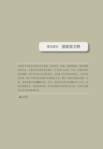 %u7b2c%u4e94%u90e8%u5206 %u56fd%u5bb6%u7ea7%u6587%u7269 59%u6587%u7269%u662f%u4e0d%u53ef%u518d%u751f%u7684%u5386%u53f2%u6587%u5316%u8d44%u6e90%uff0c%u5177%u6709%u771f%u5b9e%u3001%u76f4%u89c2%u3001%u5f62%u8c61%u7b49%u7279%u70b9%u3002%u65e2%u662f%u7cbe%u7f8e%u7684%u827a%u672f%u54c1%uff0c%u53c8%u662f%u5f25%u8db3%u73cd%u8d35%u7684%u5386%u53f2%u8d44%u6599%u3002%u5b83%u4e0d%u4f46%u53ef%u4ee5%u8bc1%u53f2%u3001%u8865%u53f2%uff0c%u8fd8%u539f%u5386%u53f2%u7684%u771f%u5b9e%u9762%u8c8c%uff0c%u800c%u4e14%u53ef%u4ee5%u7ed9%u4eba%u4eec%u7f8e%u7684%u4eab%u53d7%uff0c%u4ee5%u53ca%u4f7f%u4eba%u4eec%u4ece%u5386%u53f2%u7684%u79d1%u6280%u3001%u5de5%u827a%u4e2d%u53d7%u5230%u542f%u8fea%u3002%u6570%u5341%u5e74%u7684%u8003%u53e4%u53d1%u6398%u548c%u6587%u7269%u5f81%u96c6%u5de5%u4f5c%uff0c%u5960%u5b9a%u4e86%u6ed5%u5dde%u6587%u7269%u7684%u8d2e%u85cf%u3002%u76ee%u524d%uff0c%u5404%u7c7b%u9986%u85cf%u6587%u7269 58000 %u4f59%u4ef6%u3002%u5176%u4e2d%uff0c%u56fd%u5bb6%u7ea7%u73cd%u8d35%u6587%u7269 200 %u4f59%u4ef6%uff08%u5957%uff09%uff0c%u5728%u56fd%u5185%u5c1a%u5c5e%u7f55%u89c1%u3002%u8fd9%u4e9b%u7ecf%u5178%u6587%u7269%uff0c%u4e0d%u4ec5%u8bb0%u5f55%u6ed5%u5dde%u5148%u6c11%u7684%u751f%u6d3b%u8db3%u8ff9%uff0c%u800c%u4e14%u6210%u4e3a%u6ed5%u5dde%u53e4%u8001%u6587%u660e%u7684%u91cd%u8981%u6807%u5fd7%u3002%u7b2c%u4e94%u90e8%u5206%u2003 %u56fd%u5bb6%u7ea7%u6587%u7269%u6ed5%u5dde%u5370%u8c61