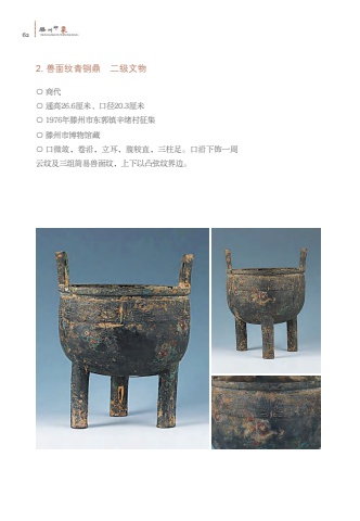 62%u6ed5TENGZHOUYINXIANG%u5dde%u5370%u8c612. %u517d%u9762%u7eb9%u9752%u94dc%u9f0e %u4e8c%u7ea7%u6587%u7269%u25cb %u5546%u4ee3%u25cb %u901a%u9ad826.6%u5398%u7c73%u3001%u53e3%u5f8420.3%u5398%u7c73%u25cb 1976%u5e74%u6ed5%u5dde%u5e02%u4e1c%u90ed%u9547%u8f9b%u7eea%u6751%u5f81%u96c6%u25cb %u6ed5%u5dde%u5e02%u535a%u7269%u9986%u85cf%u25cb %u53e3%u5fae%u655b%uff0c%u5377%u6cbf%uff0c%u7acb%u8033%uff0c%u8179%u8f83%u76f4%uff0c%u4e09%u67f1%u8db3%u3002%u53e3%u6cbf%u4e0b%u9970%u4e00%u5468%u4e91%u7eb9%u53ca%u4e09%u7ec4%u7b80%u6613%u517d%u9762%u7eb9%uff0c%u4e0a%u4e0b%u4ee5%u51f8%u5f26%u7eb9%u754c%u8fb9%u3002