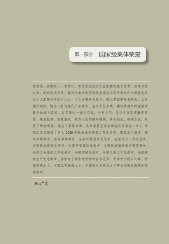 %u8363%u8a89%u662f%u4e00%u9762%u65d7%u5e1c%u3001%u4e00%u79cd%u8d23%u4efb%uff0c%u66f4%u662f%u4fc3%u8fdb%u7ecf%u6d4e%u793e%u4f1a%u53d1%u5c55%u7684%u5f3a%u5927%u52a8%u529b%u3002%u6539%u9769%u5f00%u653e%u4ee5%u6765%uff0c%u7279%u522b%u662f%u8fd1%u5e74%u6765%uff0c%u6ed5%u5dde%u5e02%u59d4%u5e02%u653f%u5e9c%u59cb%u7ec8%u575a%u6301%u4ee5%u4e60%u8fd1%u5e73%u65b0%u65f6%u4ee3%u4e2d%u56fd%u7279%u8272%u793e%u4f1a%u4e3b%u4e49%u601d%u60f3%u548c%u515a%u7684%u5341%u516b%u5927%u3001%u5341%u4e5d%u5927%u7cbe%u795e%u4e3a%u6307%u5bfc%uff0c%u6df1%u5165%u8d2f%u5f7b%u65b0%u53d1%u5c55%u7406%u5ff5%uff0c%u7acb%u8db3%u6ed5%u5dde%u5b9e%u9645%uff0c%u63d0%u51fa%u4e86%u6253%u9020%u73b0%u4ee3%u4ea7%u4e1a%u5f3a%u5e02%u3001%u751f%u6001%u6587%u5316%u540d%u57ce%uff0c%u5efa%u8bbe%u7f8e%u5fb7%u6587%u660e%u5bcc%u5f3a%u65b0%u6ed5%u5dde%u7684%u594b%u6597%u76ee%u6807%u3002%u4e3a%u5b9e%u73b0%u8fd9%u4e00%u594b%u6597%u76ee%u6807%uff0c%u5168%u5e02%u4e0a%u4e0b%u3001%u5404%u884c%u5404%u4e1a%u53d1%u6325%u52e4%u52b3%u52c7%u6562%u3001%u517c%u7231%u5305%u5bb9%u3001%u667a%u6167%u777f%u8fbe%u3001%u6562%u4e3a%u4eba%u5148%u7684%u6ed5%u5dde%u7cbe%u795e%uff0c%u4e89%u5148%u521b%u4f18%uff0c%u5efa%u529f%u7acb%u4e1a%uff0c%u53d6%u5f97%u4e86%u8f89%u714c%u6210%u5c31%uff0c%u7ed3%u51fa%u4e86%u7d2f%u7d2f%u7855%u679c%uff0c%u5148%u540e%u8363%u83b7%u5168%u56fd%u53bf%u57ce%u7ecf%u6d4e%u767e%u5f3a%u53bf%uff08%u5e02%uff09%u3001%u4e2d%u56fd%u5de5%u4e1a%u767e%u5f3a%u53bf%uff08%u5e02%uff09%u30012020 %u4e2d%u56fd%u672a%u6765%u6295%u8d44%u6f5c%u529b%u767e%u4f73%u53bf%u5e02%u3001%u56fd%u5bb6%u536b%u751f%u57ce%u5e02%u3001%u56fd%u5bb6%u56ed%u6797%u57ce%u5e02%u3001%u56fd%u5bb6%u68ee%u6797%u57ce%u5e02%u3001%u5168%u56fd%u79d1%u6280%u8fdb%u6b65%u5148%u8fdb%u5e02%u3001%u5168%u56fd%u6587%u5316%u5de5%u4f5c%u5148%u8fdb%u5e02%u3001%u5168%u56fd%u7d20%u8d28%u6559%u80b2%u793a%u8303%u5e02%u3001%u5168%u56fd%u5e73%u5b89%u5efa%u8bbe%u5148%u8fdb%u5e02%u3001%u5168%u56fd%u6c11%u65cf%u56e2%u7ed3%u8fdb%u6b65%u6a21%u8303%u96c6%u4f53%u3001%u5168%u56fd%u5de5%u4f1a%u57fa%u5c42%u5de5%u4f5c%u5148%u8fdb%u5e02%u3001%u5168%u56fd%u56e2%u5efa%u5148%u8fdb%u5e02%u3001%u5168%u56fd%u513f%u7ae5%u5de5%u4f5c%u5148%u8fdb%u5e02%u3001%u5168%u56fd%u7cae%u98df%u751f%u4ea7%u5148%u8fdb%u5355%u4f4d%u3001%u56fd%u5bb6%u7535%u5b50%u5546%u52a1%u8fdb%u519c%u6751%u7efc%u5408%u793a%u8303%u5e02%u3001%u4e2d%u56fd%u4e2d%u5c0f%u673a%u5e8a%u4e4b%u90fd%u3001%u4e2d%u56fd%u5efa%u7b51%u4e4b%u4e61%u3001%u4e2d%u56fd%u5de5%u827a%u73bb%u7483%u4e4b%u4e61%u3001%u4e2d%u56fd%u6de1%u6c34%u9c7c%u70f9%u996a%u4e4b%u4e61%u7b49%u4f17%u591a%u56fd%u5bb6%u7ea7%u96c6%u4f53%u8363%u8a89%u79f0%u53f7%u3002%u7b2c%u4e00%u90e8%u5206%u2003 %u56fd%u5bb6%u7ea7%u96c6%u4f53%u8363%u8a89%u6ed5%u5dde%u5370%u8c61
