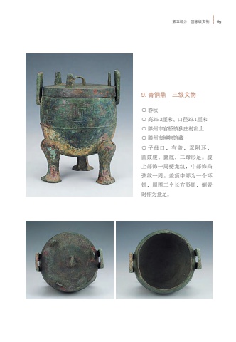 %u7b2c%u4e94%u90e8%u5206 %u56fd%u5bb6%u7ea7%u6587%u7269 699. %u9752%u94dc%u9f0e %u4e09%u7ea7%u6587%u7269%u25cb %u6625%u79cb%u25cb %u9ad835.3%u5398%u7c73%u3001%u53e3%u5f8423.1%u5398%u7c73%u25cb %u6ed5%u5dde%u5e02%u5b98%u6865%u9547%u72c4%u5e84%u6751%u51fa%u571f%u25cb %u6ed5%u5dde%u5e02%u535a%u7269%u9986%u85cf%u25cb %u5b50%u6bcd%u53e3%uff0c%u6709%u76d6%uff0c%u53cc%u9644%u8033%uff0c%u5706%u9f13%u8179%uff0c%u571c%u5e95%uff0c%u4e09%u8e44%u5f62%u8db3%u3002%u8179%u4e0a%u90e8%u9970%u4e00%u5468%u5914%u9f99%u7eb9%uff0c%u4e2d%u90e8%u9970%u51f8%u5f26%u7eb9%u4e00%u5468%u3002%u76d6%u9876%u4e2d%u90e8%u4e3a%u4e00%u4e2a%u73af%u94ae%uff0c%u5468%u56f4%u4e09%u4e2a%u957f%u65b9%u5f62%u94ae%uff0c%u5012%u7f6e%u65f6%u4f5c%u4e3a%u76d8%u8db3%u3002