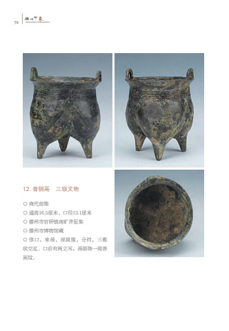 72%u6ed5TENGZHOUYINXIANG%u5dde%u5370%u8c6112. %u9752%u94dc%u9b32 %u4e09%u7ea7%u6587%u7269%u25cb %u5546%u4ee3%u524d%u671f%u25cb %u901a%u9ad816.5%u5398%u7c73%u3001%u53e3%u5f8413.1%u5398%u7c73%u25cb %u6ed5%u5dde%u5e02%u5b98%u6865%u9547%u5357%u77ff%u4e95%u5f81%u96c6%u25cb %u6ed5%u5dde%u5e02%u535a%u7269%u9986%u85cf%u25cb %u4f88%u53e3%uff0c%u675f%u9888%uff0c%u6df1%u9f13%u8179%uff0c%u5206%u88c6%uff0c%u4e09%u9525%u72b6%u7a7a%u8db3%u3002%u53e3%u6cbf%u6709%u4e24%u7acb%u8033%uff0c%u9888%u90e8%u9970%u4e00%u5468%u517d%u9762%u7eb9%u3002