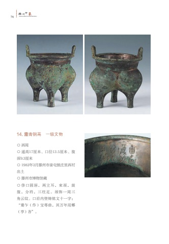 74%u6ed5TENGZHOUYINXIANG%u5dde%u5370%u8c6114. %u7590%u9752%u94dc%u9b32 %u4e00%u7ea7%u6587%u7269%u25cb %u897f%u5468%u25cb %u901a%u9ad817%u5398%u7c73%u3001%u53e3%u5f8413.5%u5398%u7c73%u3001%u8179%u6df19.3%u5398%u7c73%u25cb 1982%u5e743%u6708%u6ed5%u5dde%u5e02%u59dc%u5c6f%u9547%u5e84%u91cc%u897f%u6751%u51fa%u571f%u25cb %u6ed5%u5dde%u5e02%u535a%u7269%u9986%u85cf%u25cb %u4f88%u53e3%u5706%u5507%uff0c%u4e24%u7acb%u8033%uff0c%u675f%u9888%uff0c%u9f13%u8179%uff0c%u5206%u88c6%uff0c%u4e09%u67f1%u8db3%u3002%u9888%u9970%u4e00%u5468%u4e09%u89d2%u4e91%u7eb9%u3002%u53e3%u6cbf%u5185%u58c1%u94f8%u94ed%u6587%u5341%u4e00%u5b57%uff1a%u201c%u7590%u4e4d%uff08%u4f5c%uff09%u5b9d%u5c0a%u9f0e%uff0c%u5176%u4e07%u5e74%u7528%u90f7%uff08%u4eab%uff09%u5404%u201d%u3002