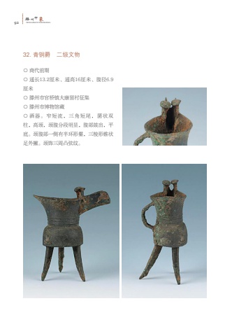 92%u6ed5TENGZHOUYINXIANG%u5dde%u5370%u8c6132. %u9752%u94dc%u7235 %u4e8c%u7ea7%u6587%u7269%u25cb %u5546%u4ee3%u524d%u671f%u25cb %u901a%u957f13.2%u5398%u7c73%u3001%u901a%u9ad816%u5398%u7c73%u3001%u8179%u5f846.9%u5398%u7c73%u25cb %u6ed5%u5dde%u5e02%u5b98%u6865%u9547%u5927%u5eb7%u7559%u6751%u5f81%u96c6%u25cb %u6ed5%u5dde%u5e02%u535a%u7269%u9986%u85cf%u25cb %u9152%u5668%u3002%u7a84%u77ed%u6d41%uff0c%u4e09%u89d2%u77ed%u5c3e%uff0c%u83cc%u72b6%u53cc%u67f1%uff0c%u9ad8%u9888%uff0c%u9888%u8179%u5206%u6bb5%u660e%u663e%uff0c%u8179%u90e8%u9f13%u51fa%uff0c%u5e73%u5e95%u3002%u9888%u8179%u90e8%u4e00%u4fa7%u6709%u534a%u73af%u5f62%u92ec%uff0c%u4e09%u68f1%u5f62%u9525%u72b6%u8db3%u5916%u6487%u3002%u9888%u9970%u4e09%u5468%u51f8%u5f26%u7eb9%u3002